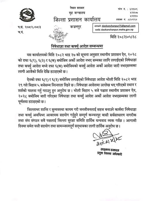 कञ्चनपुर जिल्ला प्रशासनबाट जारी गरिएको सूचना!
