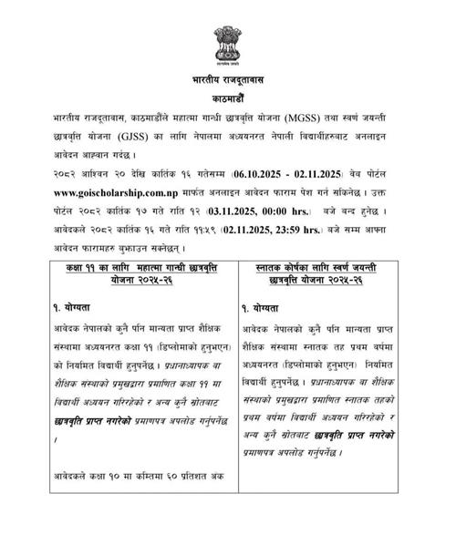 महात्मा गान्धी छात्रवृत्रि फाराम भर्ने सम्बन्धमा ।